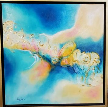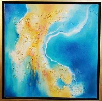 These paintings were created in oil on 1" deep canvases. They feature a gold glitter effect and texturing. They been coated with varnish to enhance and protect.